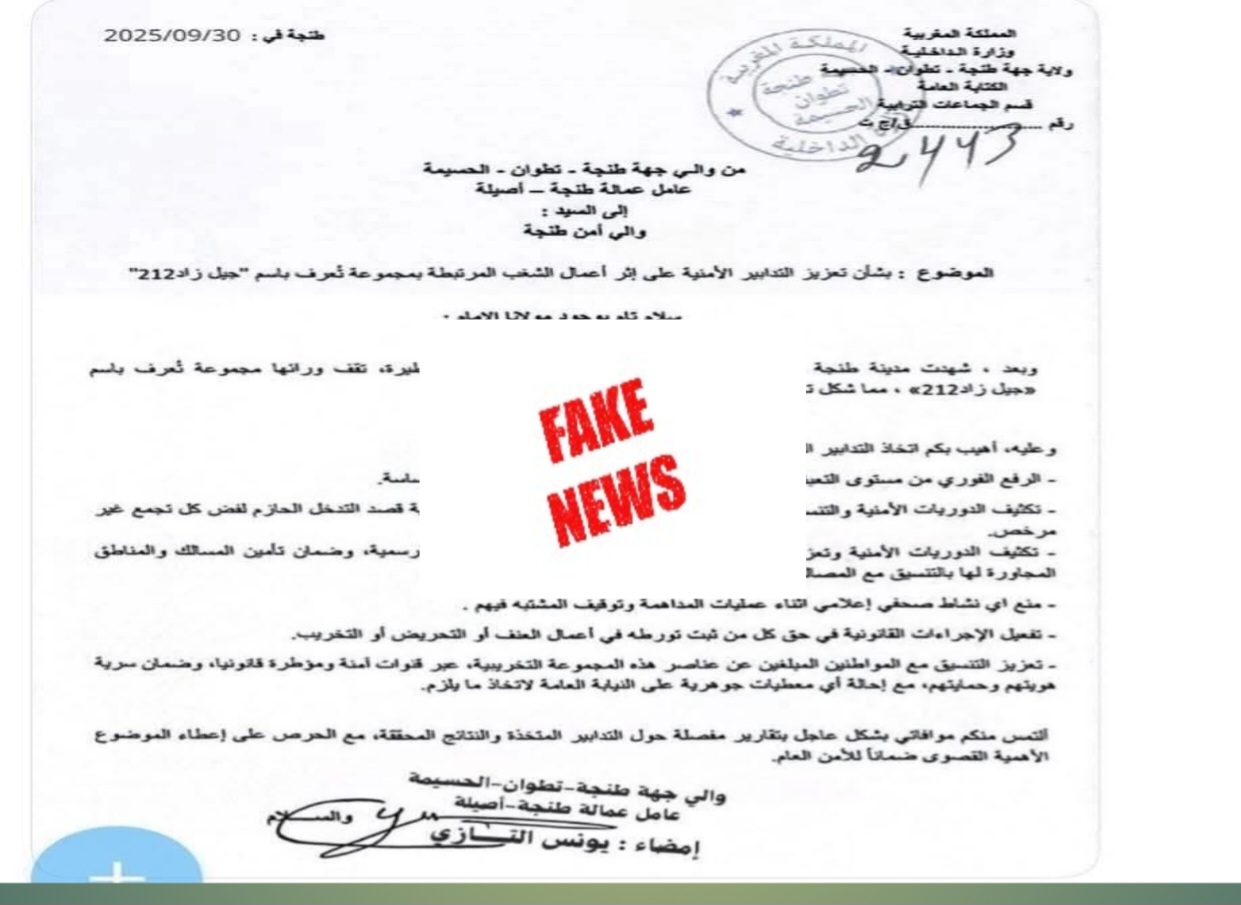 News Fake : مصدر مطلع يؤكد زيف وثيقة “جيل زاد 212” الأمنية المتداولة