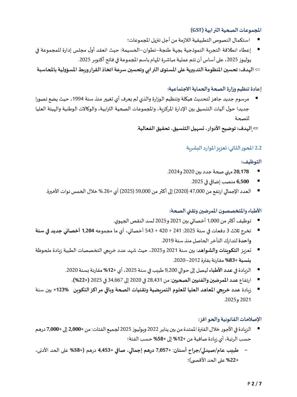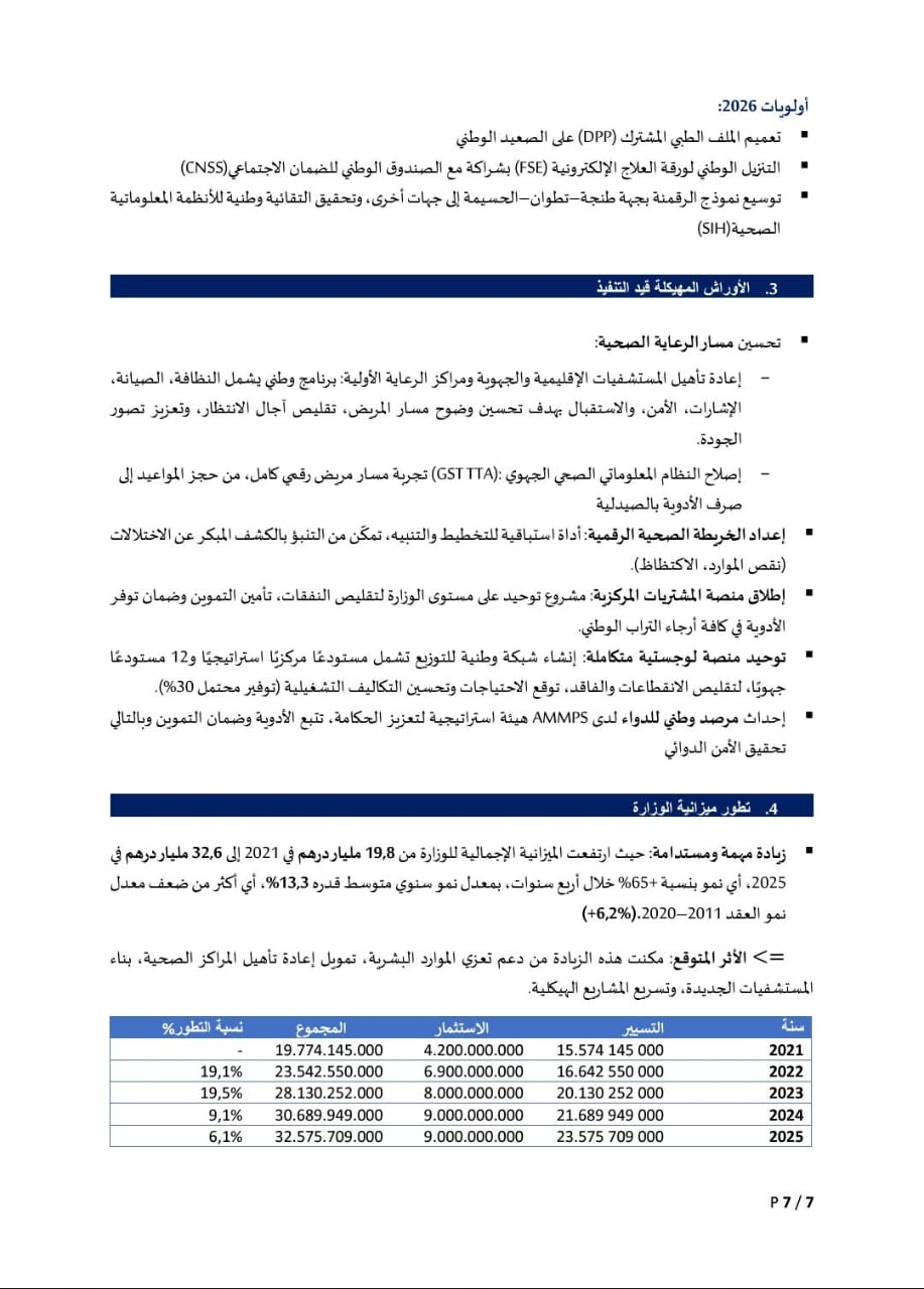 ويمثل هذا التقرير خلاصة لمرحلة مفصلية في مسار إصلاح المنظومة الصحية الوطنية، التي لم تعد خياراً مؤجلاً بل ضرورة استراتيجية لضمان حق المواطن في الصحة والحياة الكريمة.