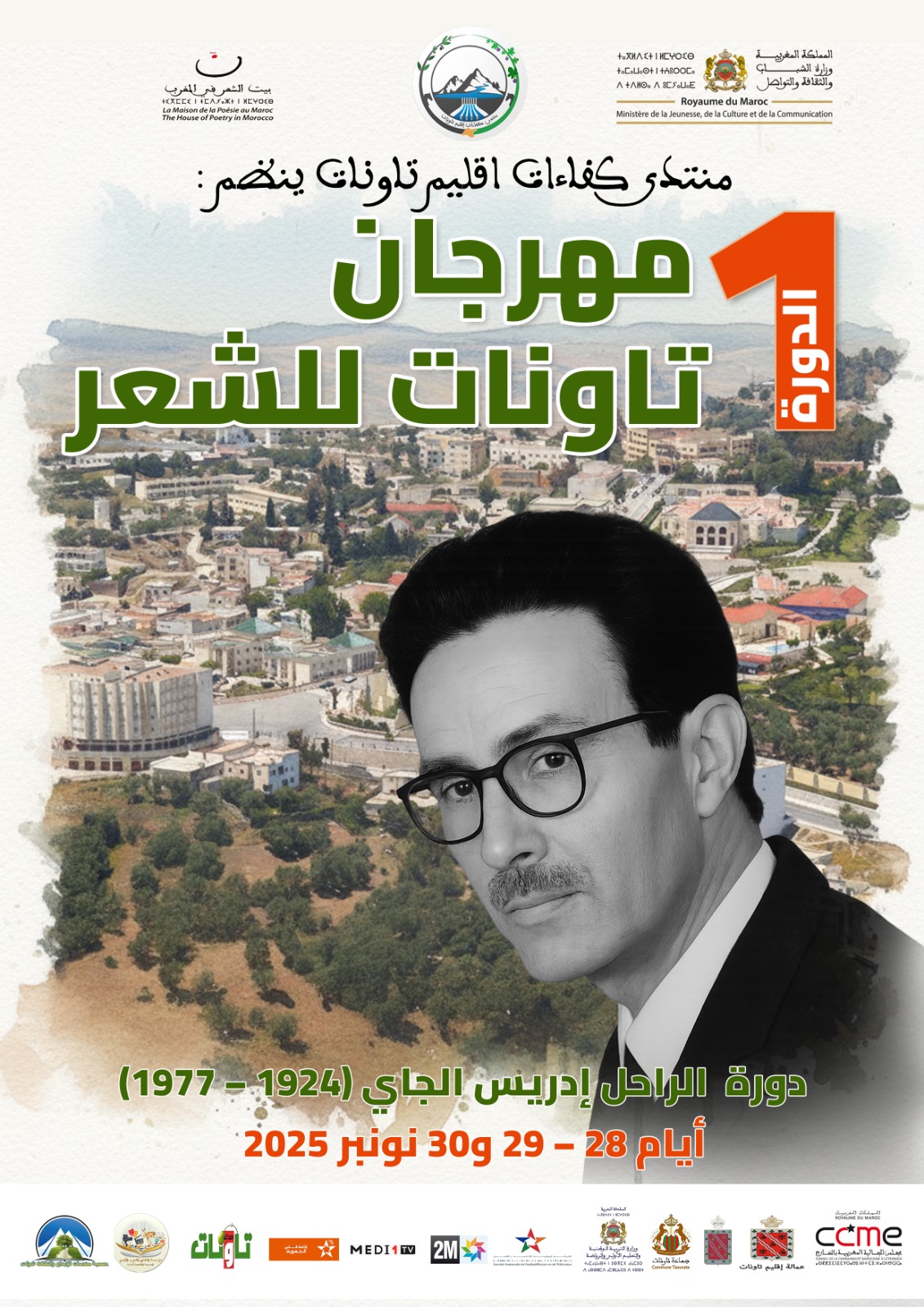 وفاءً لروح شاعرٍ بصم المشهد الأدبي في المغرب بفرادة حضوره وإخلاصه للشعر وللإعلام الثقافي، ينظم منتدى كفاءات إقليم تاونات ؛ بدعم من وزارة الشباب والثقافة والـتواصل وبتنسيق مع بيت الشعر في المغرب؛ مهرجانًا شعريًا بمدينة تاونات أيام 28 ـ 29 و30 نونبر 2025، تكريماً للشاعر الراحل إدريس الجاي (1924 – 1977)، الذي يعد أحد أبرز الأصوات الشعرية المغربية التي جمعت بين التجربة الشعرية الأصيلة والانفتاح على آفاق الفكر والثقافة العالمية.