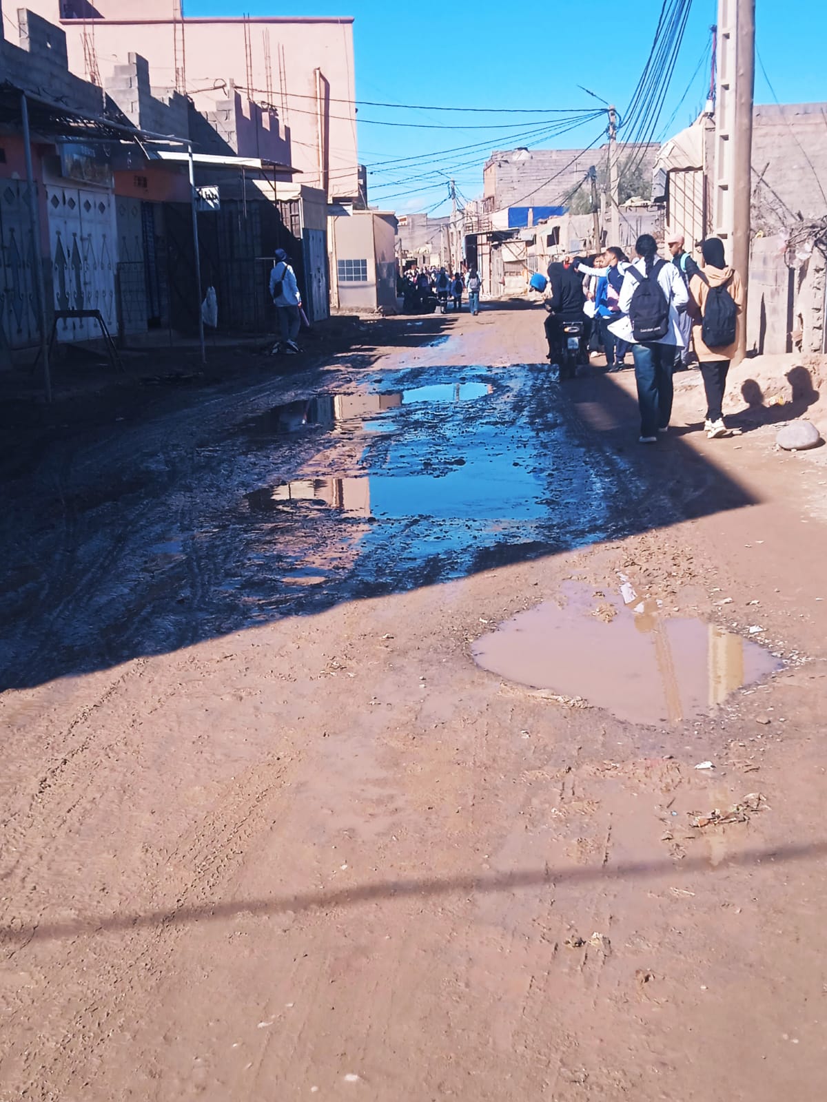 يعيش دوار رجال أحمر بجماعة أكفاي وضعاً تنموياً مقلقاً يكشف حجم الخصاص في البنيات الأساسية، حيث يضطر يومياً أزيد من 2000 تلميذ و70 أستاذاً بمدرسة ابن خلدون إلى عبور الوحل للوصول إلى فصول الدراسة، في مشهد يعكس هشاشة المسالك الطرقية وغياب حلول استعجالية. كما لا تختلف الوضعية كثيراً بالنسبة للمدرسة الابتدائية بالمنطقة، التي تضم 600 تلميذ يعانون الظروف نفسها.