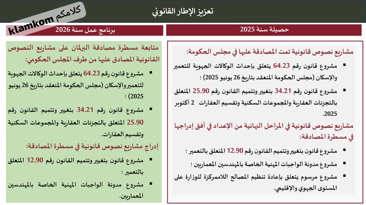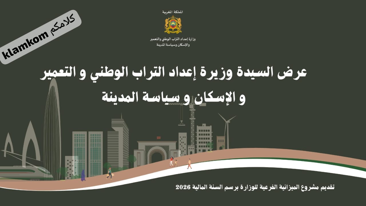 قدّمت السيدة فاطمة الزهراء المنصوري، وزيرة إعداد التراب الوطني والتعمير والإسكان وسياسة المدينة، اليوم مشروع الميزانية الفرعية للوزارة برسم السنة المالية 2026، وذلك خلال اجتماع لجنة الداخلية والجماعات الترابية والبنيات الأساسية بمجلس المستشارين. وقد تلا ذلك نقاش موسّع مع السادة المستشارين حول مضامين المشروع وتوجهاته وأولوياته.