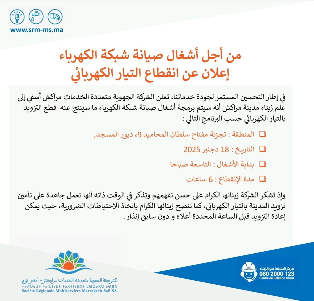 إعلان عن انقطاع التيار الكهربائي بمراكش