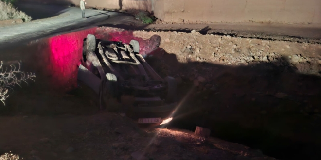 شهدت إحدى الطرق غير المصنفة، على مستوى دوار نواصر التابع لقيادة سيدي بوزيد بإقليم شيشاوة، صباح اليوم الخميس 02 يناير 2026، حادثة سير عرضية، إثر انقلاب سيارة من نوع بيكوب داخل قناة مائية.