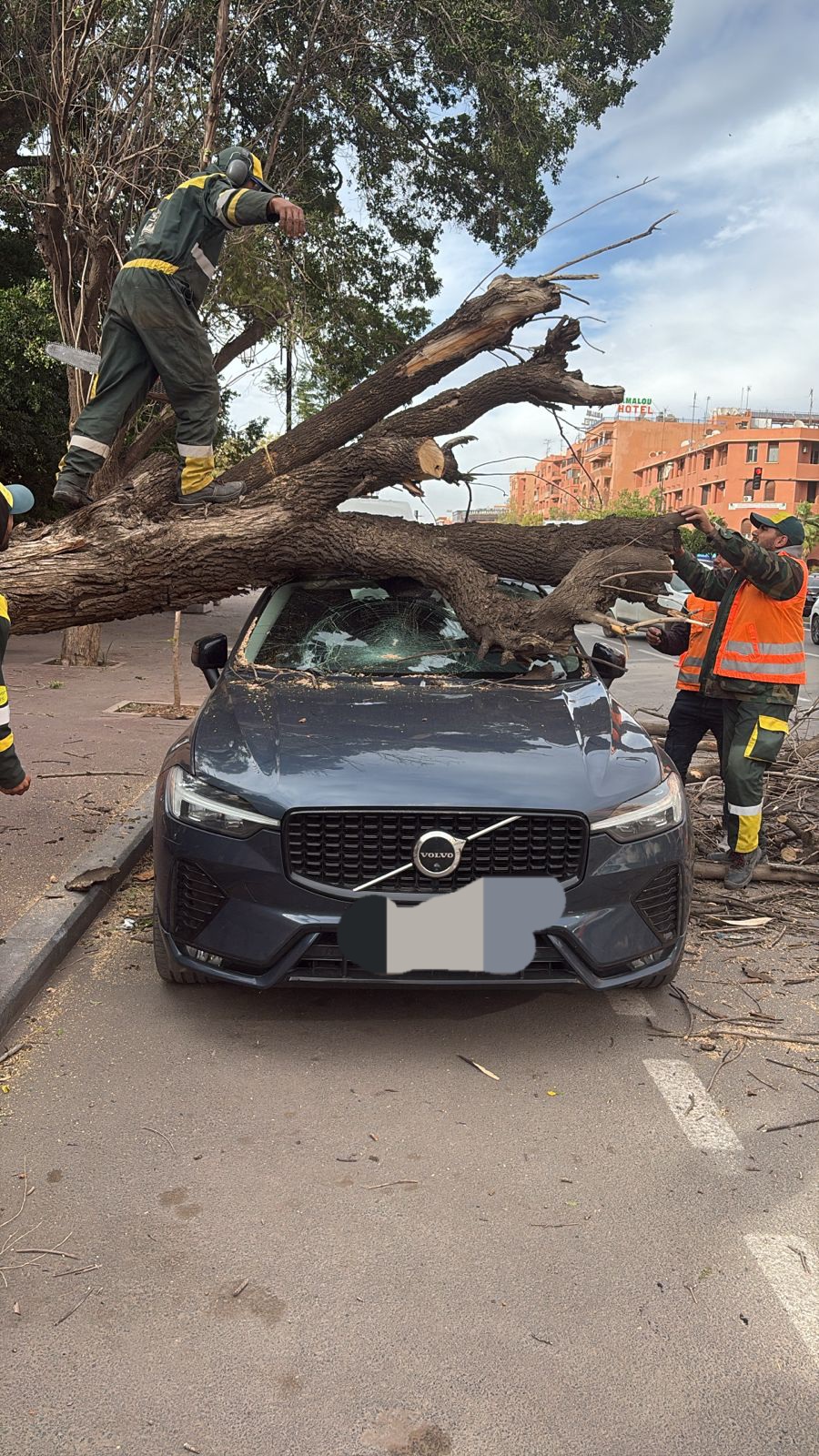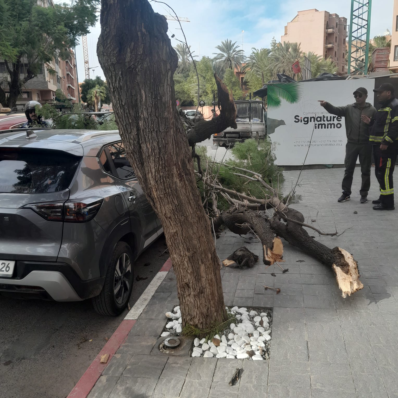 تسببت الرياح العاصفة والقوية التي شهدتها مدينة مراكش، اليوم، في تسجيل خسائر مادية متفرقة، بعد سقوط عدد من الأشجار على سيارات مركونة ودراجات نارية بعدة أحياء من المدينة.