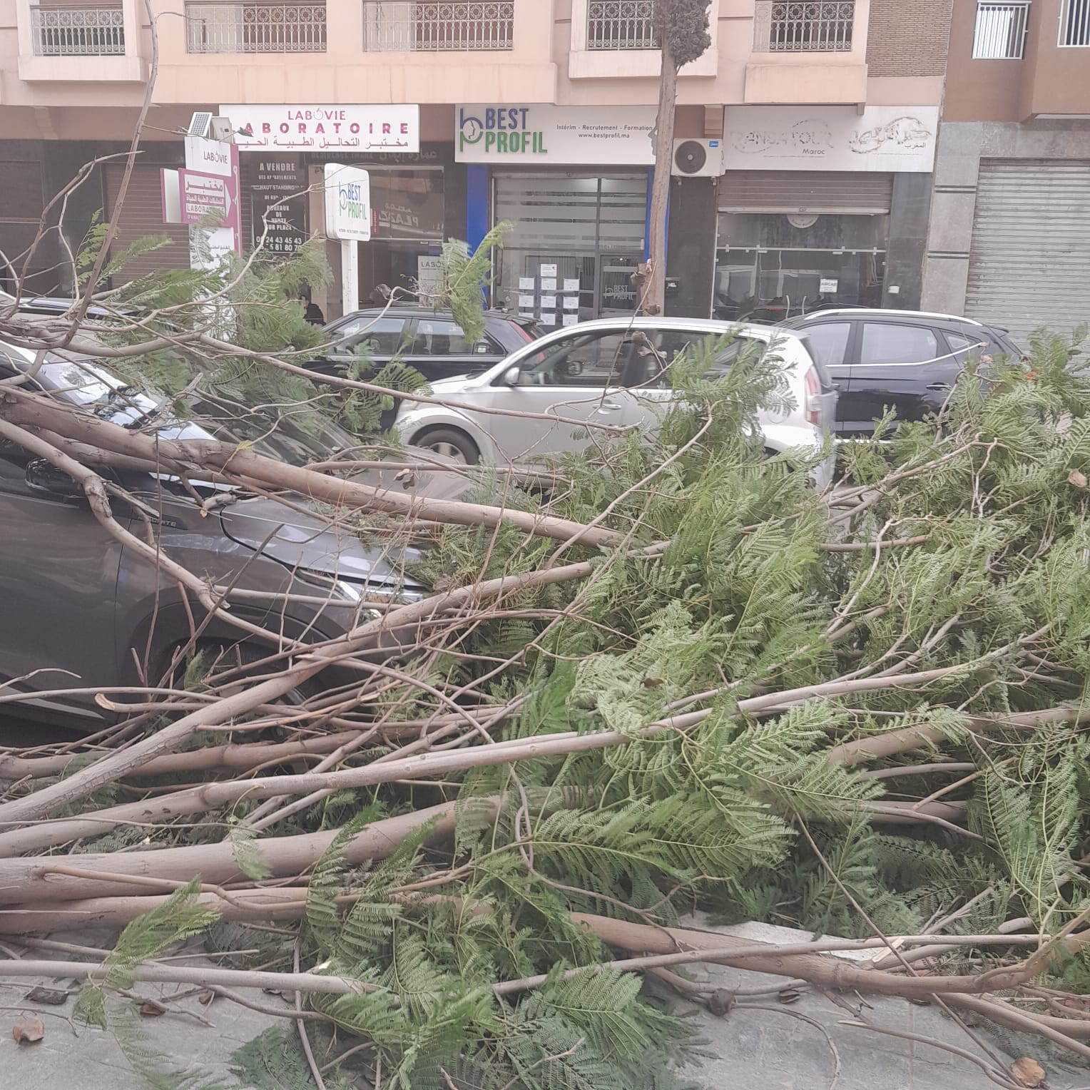 وحسب معطيات متطابقة، فقد أدت قوة الرياح إلى اقتلاع أشجار أو كسر فروعها، ما خلّف أضرارًا واضحة في بعض العربات، دون تسجيل خسائر بشرية، في وقت خلفت فيه الواقعة حالة من الخوف والهلع في صفوف الساكنة.