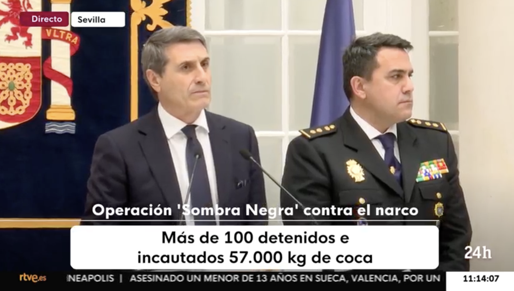 كشفت القناة الإسبانية العمومية Canal 24 horas، ضمن برنامجها الإخباري Diario 24h، بنجاح عملية أمنية دولية واسعة النطاق حملت اسم “Sombra Negra” (الظل الأسود)، وأسفرت عن تفكيك واحدة من أخطر الشبكات الإجرامية المتخصصة في الاتجار الدولي بالمخدرات القوية، في عملية وُصفت بالنوعية والاستثنائية.