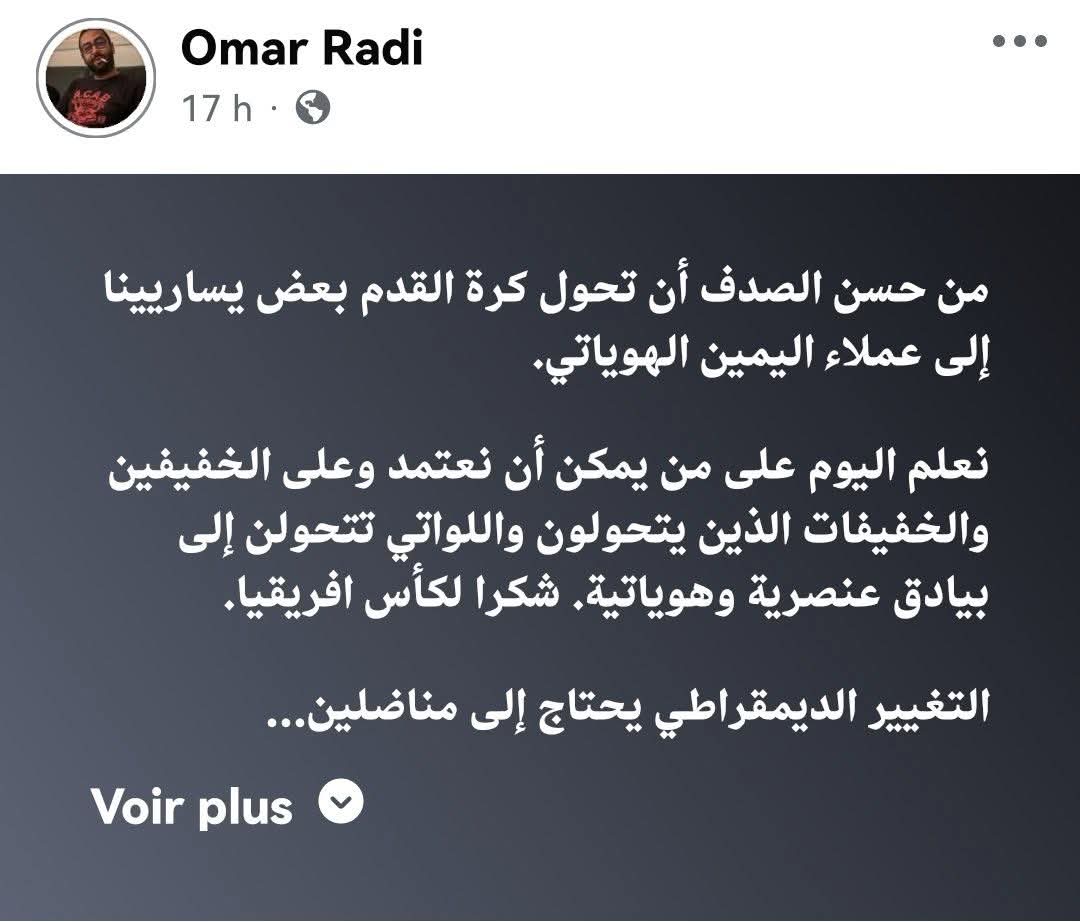 المشكلة ليست في الإشارة إلى مظاهر عنصرية أو انزلاقات إيديولوجية داخل بعض المدرجات، فهذا نقاش مشروع وضروري، بل في التعميم الكسول الذي يحوّل كرة القدم، بكل تعقيدها الاجتماعي والثقافي، إلى مجرد مصنع لـ“اليمين الهوياتي” و“الخفيفين”. هنا بالضبط ينقلب الخطاب من نقد إلى وصم جماعي، ومن دفاع عن القيم إلى ممارسة شكل آخر من الإقصاء.