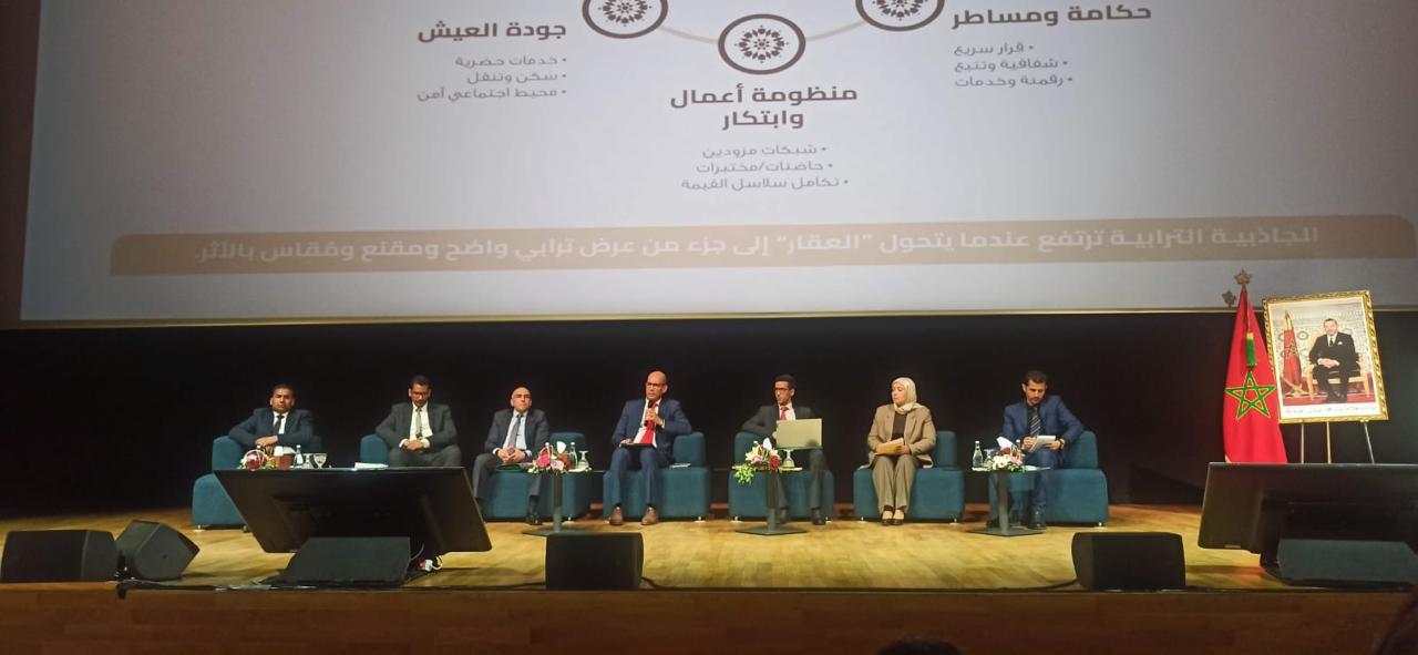 من جهته، أكد الأستاذ محفوظ، مساعد المدير العام للمركز الجهوي للاستثمار لجهة مراكش–آسفي، في مداخلته حول “العقار كرافعة للتنمية الاقتصادية وجذب الاستثمارات المنتجة”، أن العقار يشكل حجر الزاوية في تحسين مناخ الأعمال، مبرزًا أن توفير وعاء عقاري مؤطر قانونيًا وواضح المعالم يعد شرطًا أساسياً لاستقطاب المشاريع المنتجة وخلق فرص الشغل، داعيًا إلى تبسيط المساطر وتعزيز التنسيق المؤسساتي لضمان حكامة عقارية فعالة.