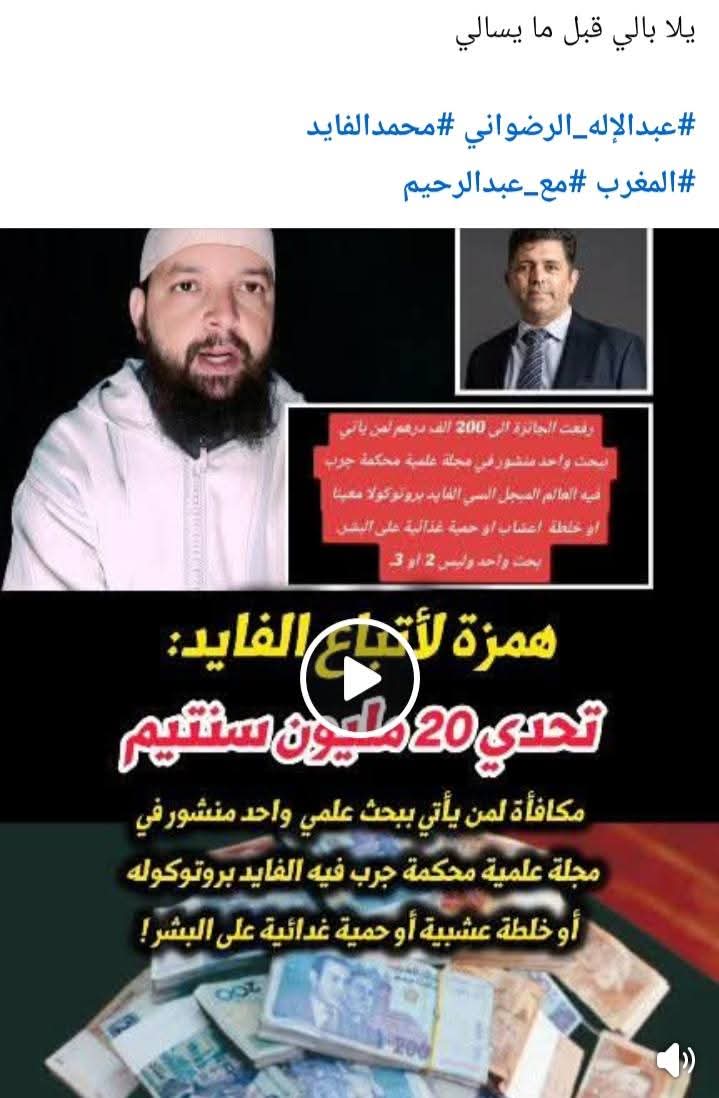 عاد اسم الدكتور محمد الفايد ليتصدر النقاش على مواقع التواصل الاجتماعي، بعد تداول ما سُمّي بـ“تحدي الفايد”، وهو جدل انطلق من مطالبة بعض المنتقدين بتقديم أبحاث علمية منشورة تثبت صحة ما يطرحه الباحث المغربي في مجال التغذية والخلطات الطبيعية.