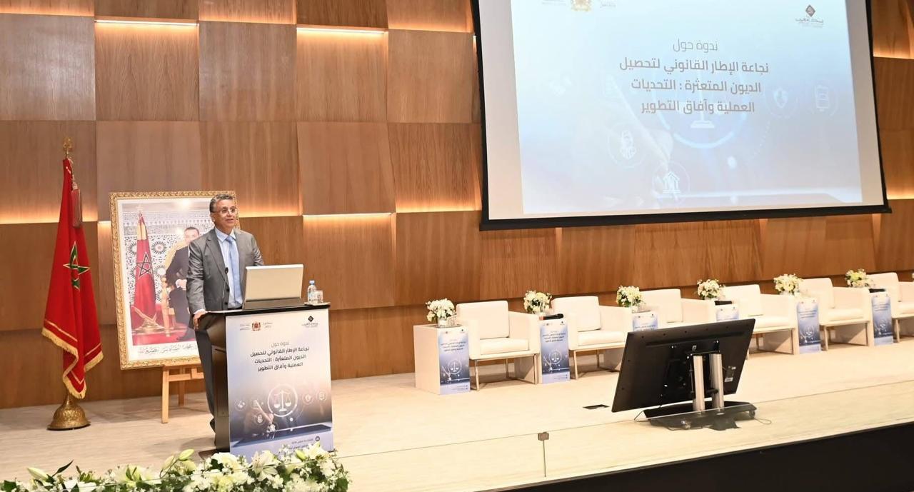 جاء ذلك في أشغال الندوة الوطنية المنظمة بشراكة مع بنك المغرب والمنعقدة اليوم الثلاثاء 24 مارس 2025 بالرباط تحت عنوان: ” نجاعة الإطار القانوني لتحصيل الديون المتعثرة: التحديات العملية وآفاق التطوير”، بحضور رئيس النيابة العامة ووالي بنك المغرب وعدد من مسؤولي الوزارة والشخصيات.