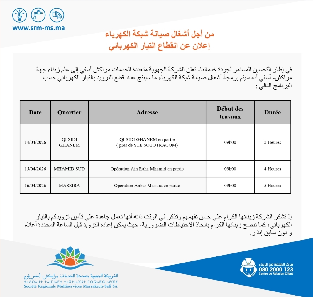 الرئيسيةبلاحدود إعلان عن انقطاع التيار الكهربائي بهذه الأحياء بمراكش إعلان عن انقطاع التيار الكهربائي بهذه الأحياء بمراكش بواسطة كلامكم - 14 أبريل، 2026 - فيبلاحدود 5447 التعليقات على إعلان عن انقطاع التيار الكهربائي بهذه الأحياء بمراكش مغلقة إعلان