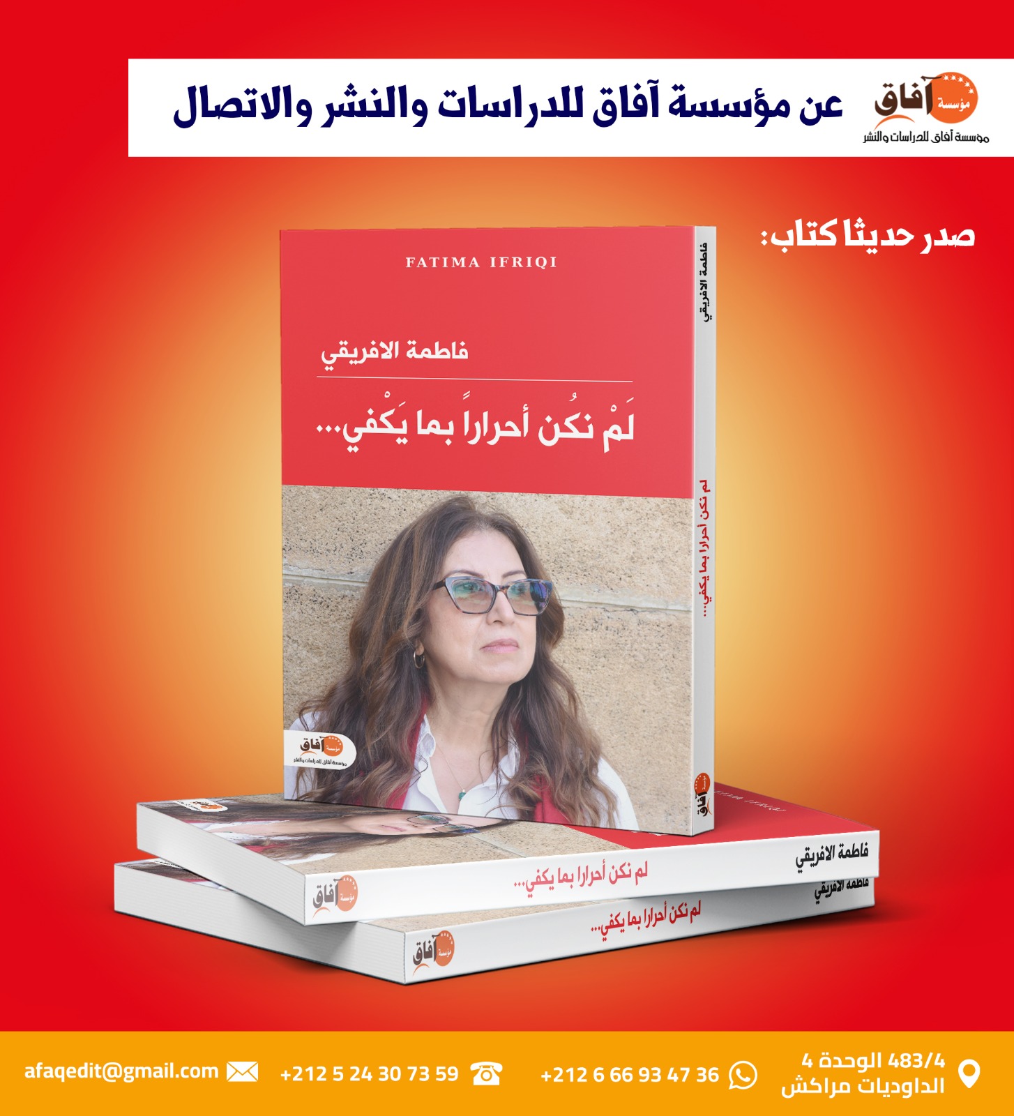 في زمن تتكاثر فيه الأسئلة وتضيق فيه الأجوبة، تصدر الإعلامية والكاتبة فاطمة الإفريقي عملاً جديداً بعنوان “لم نكن أحراراً بما يكفي..”، عن مؤسسة آفاق للدراسات والنشر والاتصال، لتفتح من خلاله جبهة تأمل نقدي حاد في واقع حرية التعبير بالمغرب، عبر نصوص تمتد زمنياً من سنة 2012 إلى اليوم.