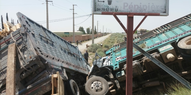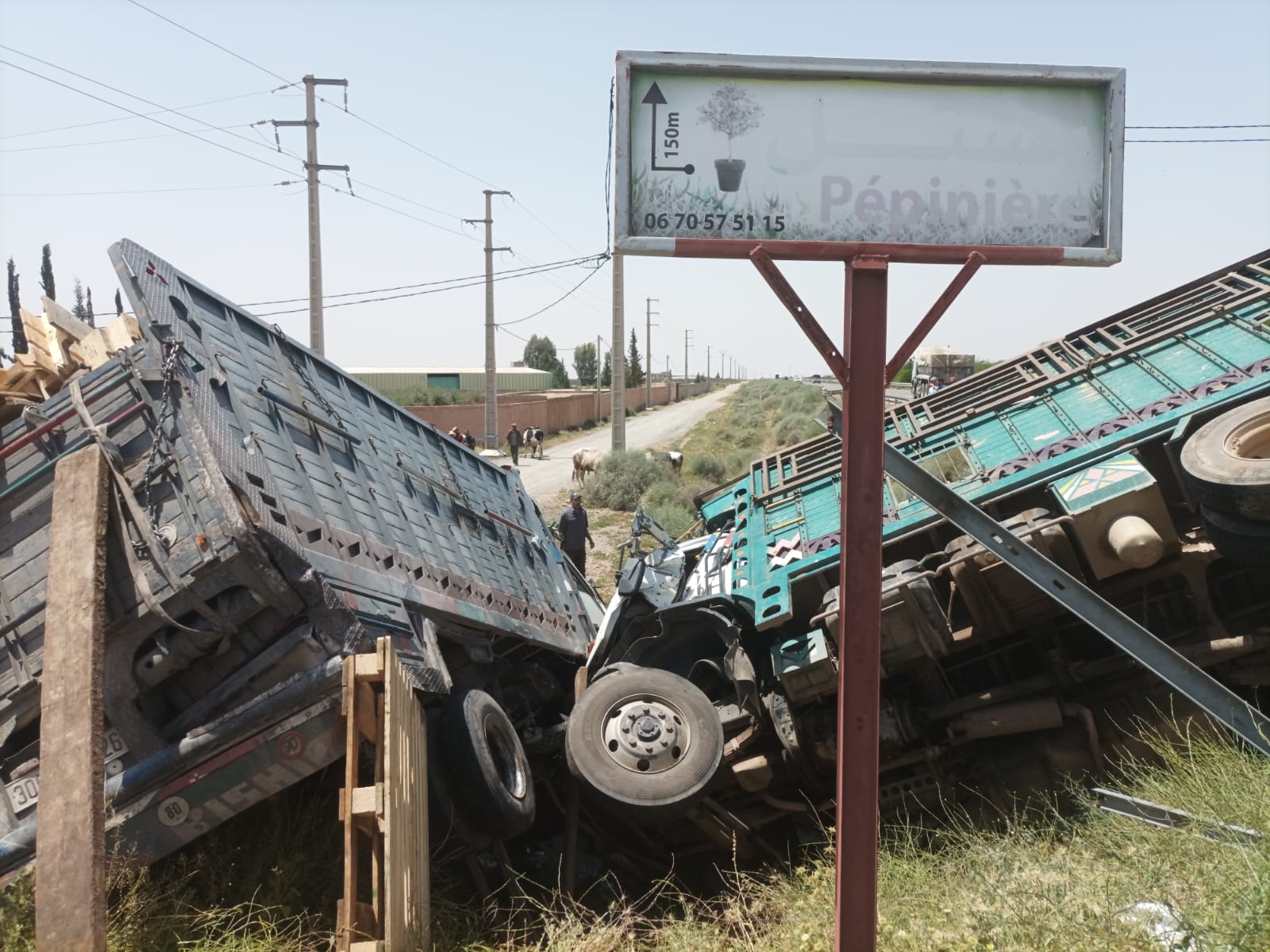 وقعت، زوال اليوم، حادثة سير خطيرة نتيجة اصطدام بين شاحنتين بدوار أولاد اعكيل التابع لجماعة لوداية بضواحي مراكش، ما أسفر عن إصابة شخصين بجروح متفاوتة الخطورة.